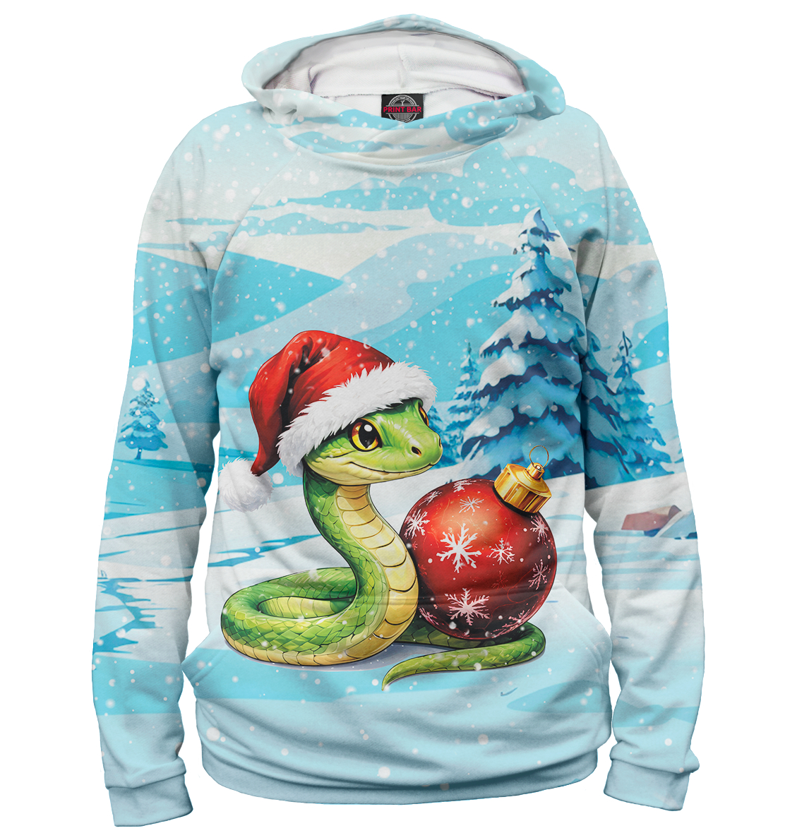 Женское худи с принтом «Змея в новогодней шапке»