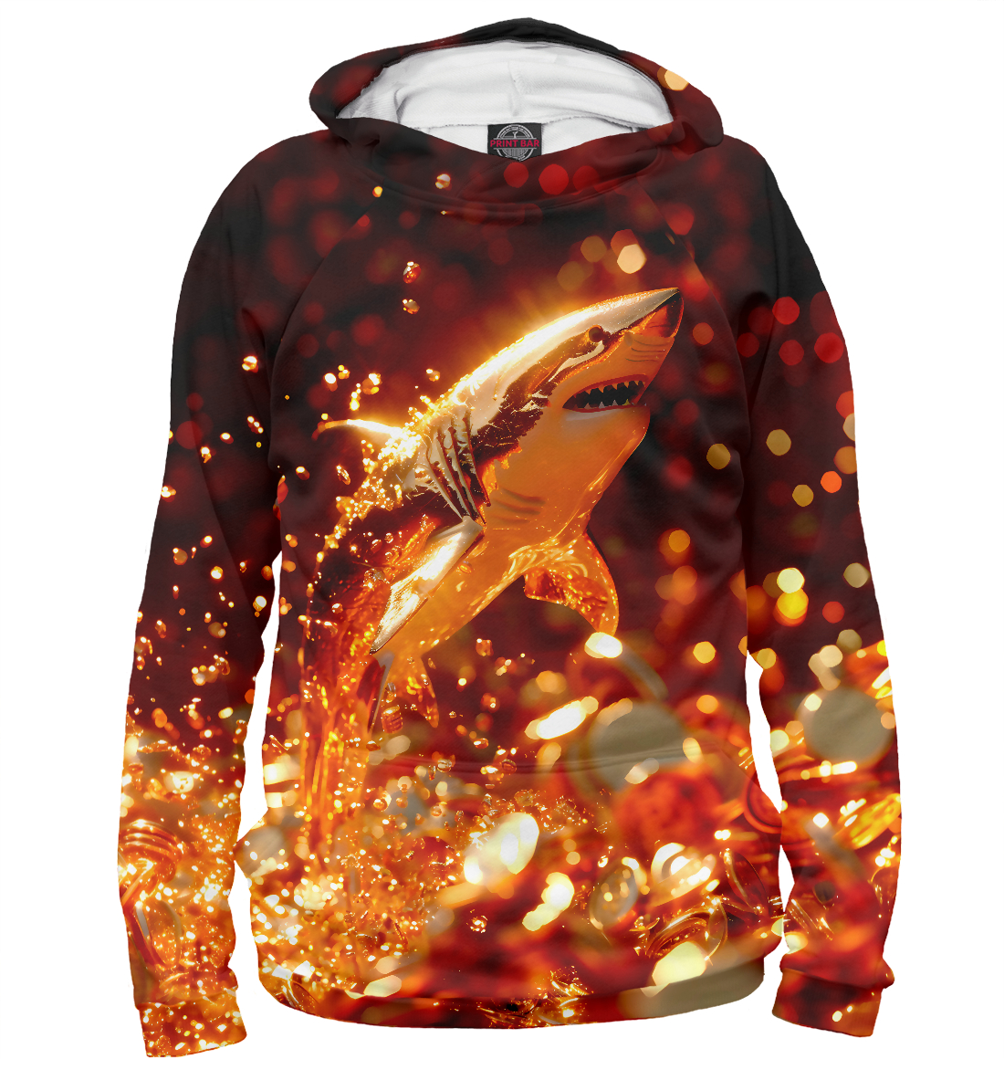Женское худи с принтом «Золотая акула и море золотых монет»