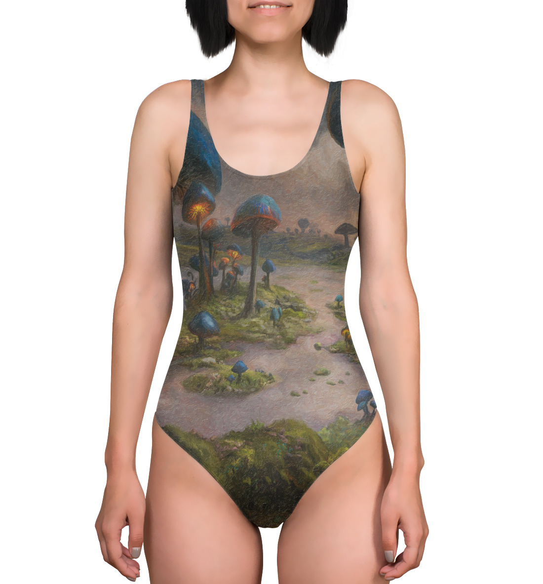 Купальник-боди с принтом «Планета волшебных грибов»