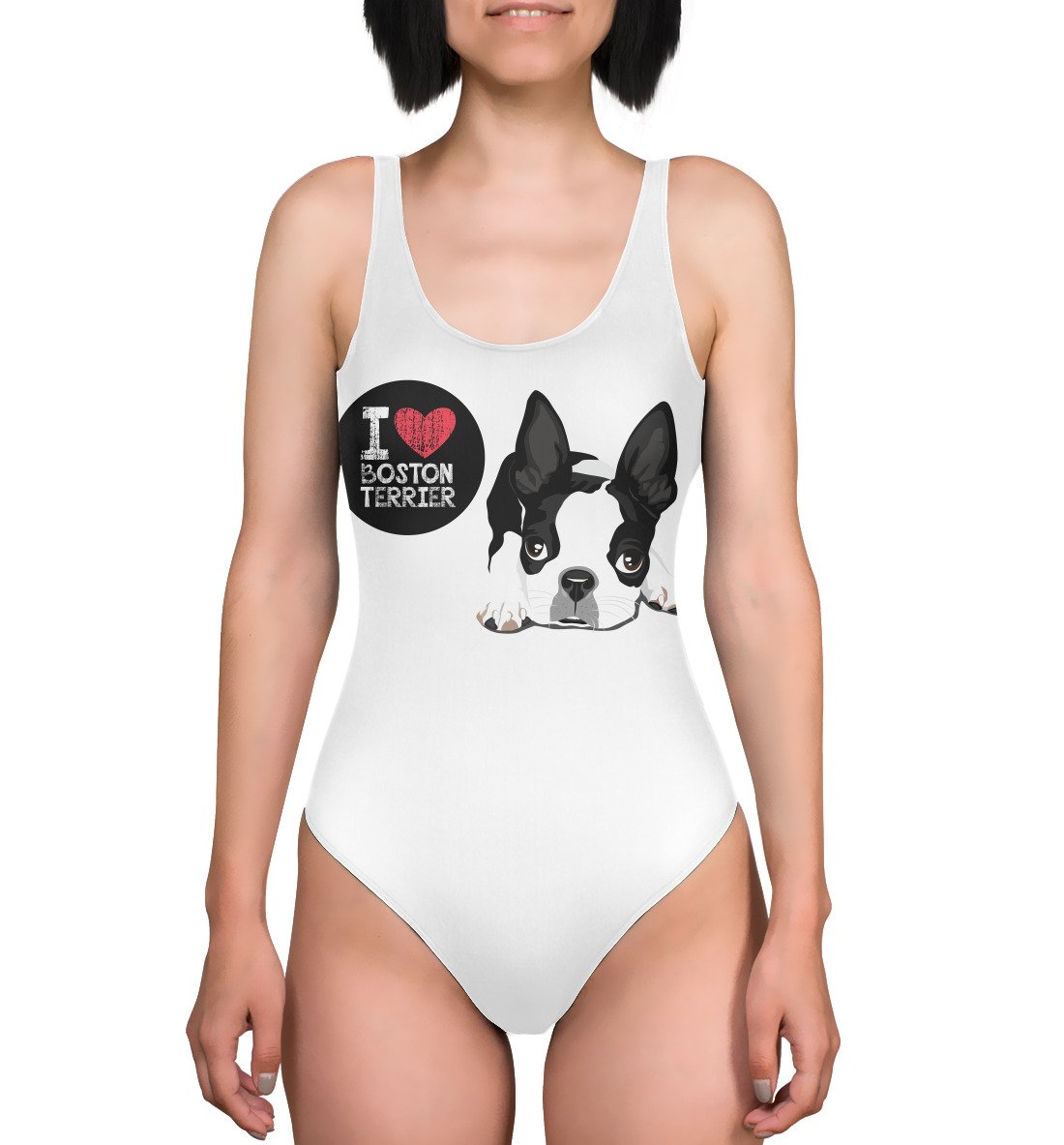 Купальник-боди с принтом «Я люблю Бостон Терьер»