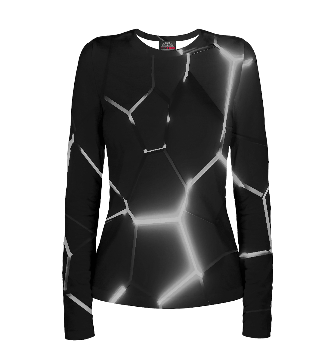 Женский лонгслив с принтом «3D ПЛИТЫ | ЧЕРНО-БЕЛЫЙ | РАЗЛОМЫ»