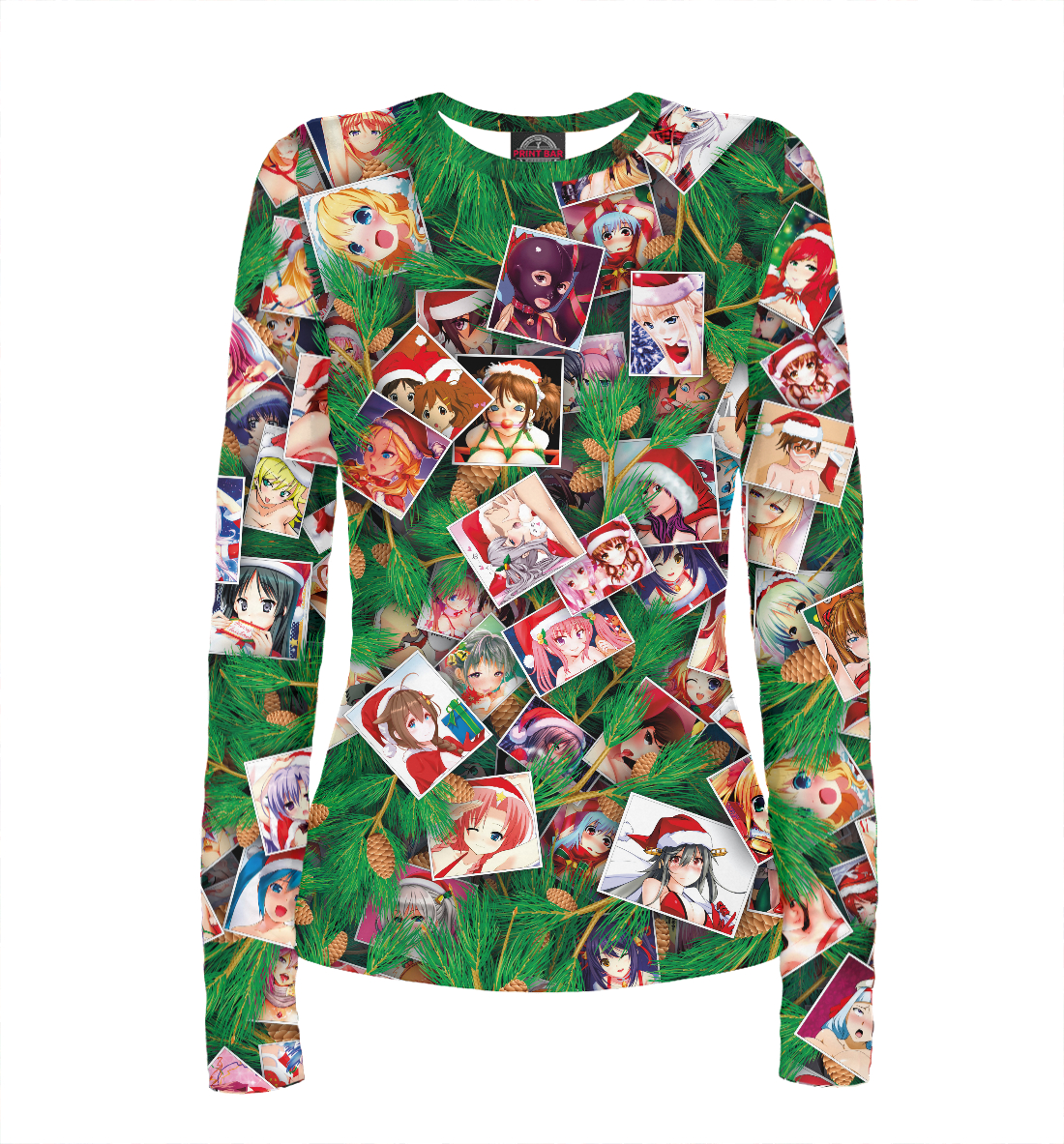 Женский лонгслив с принтом «Ахегао С новым годом»