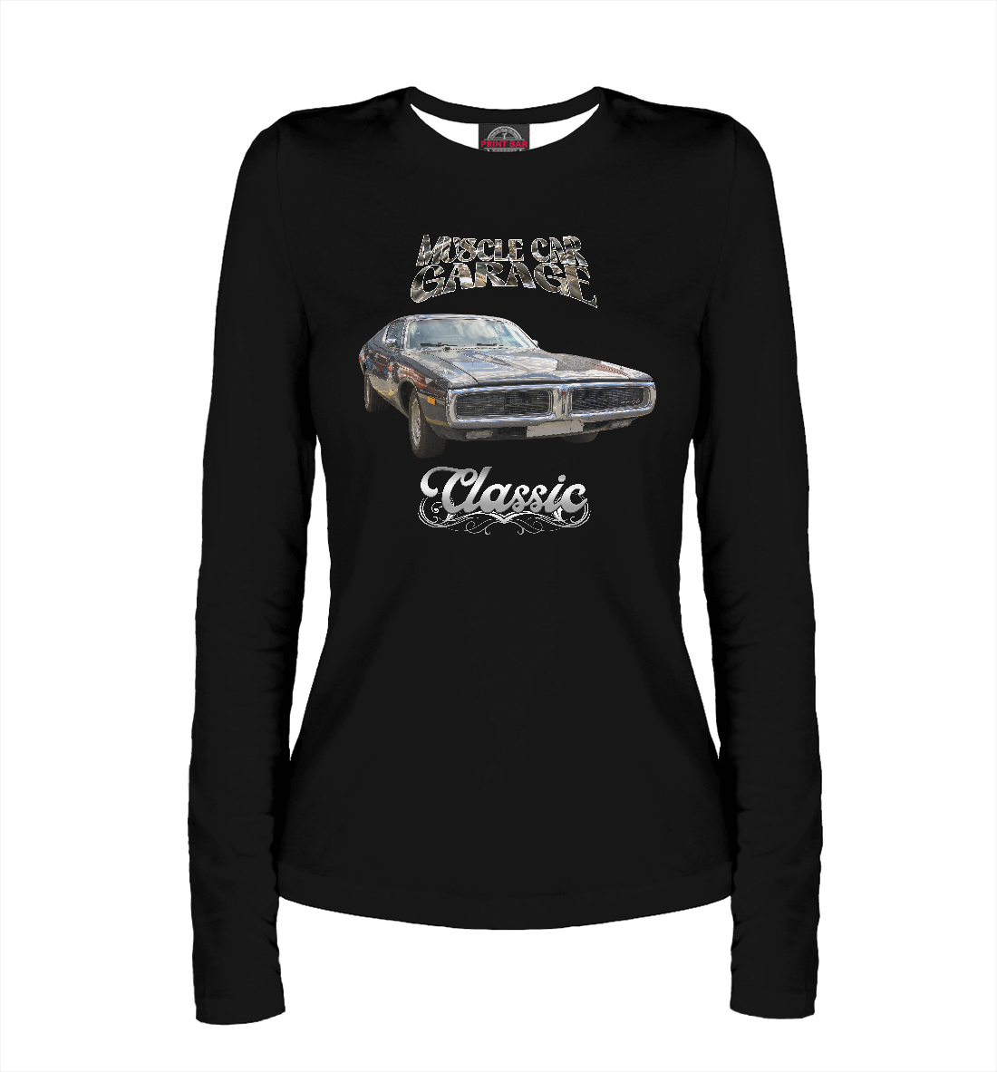 Женский лонгслив с принтом «Американский масл-кар на черном фоне»