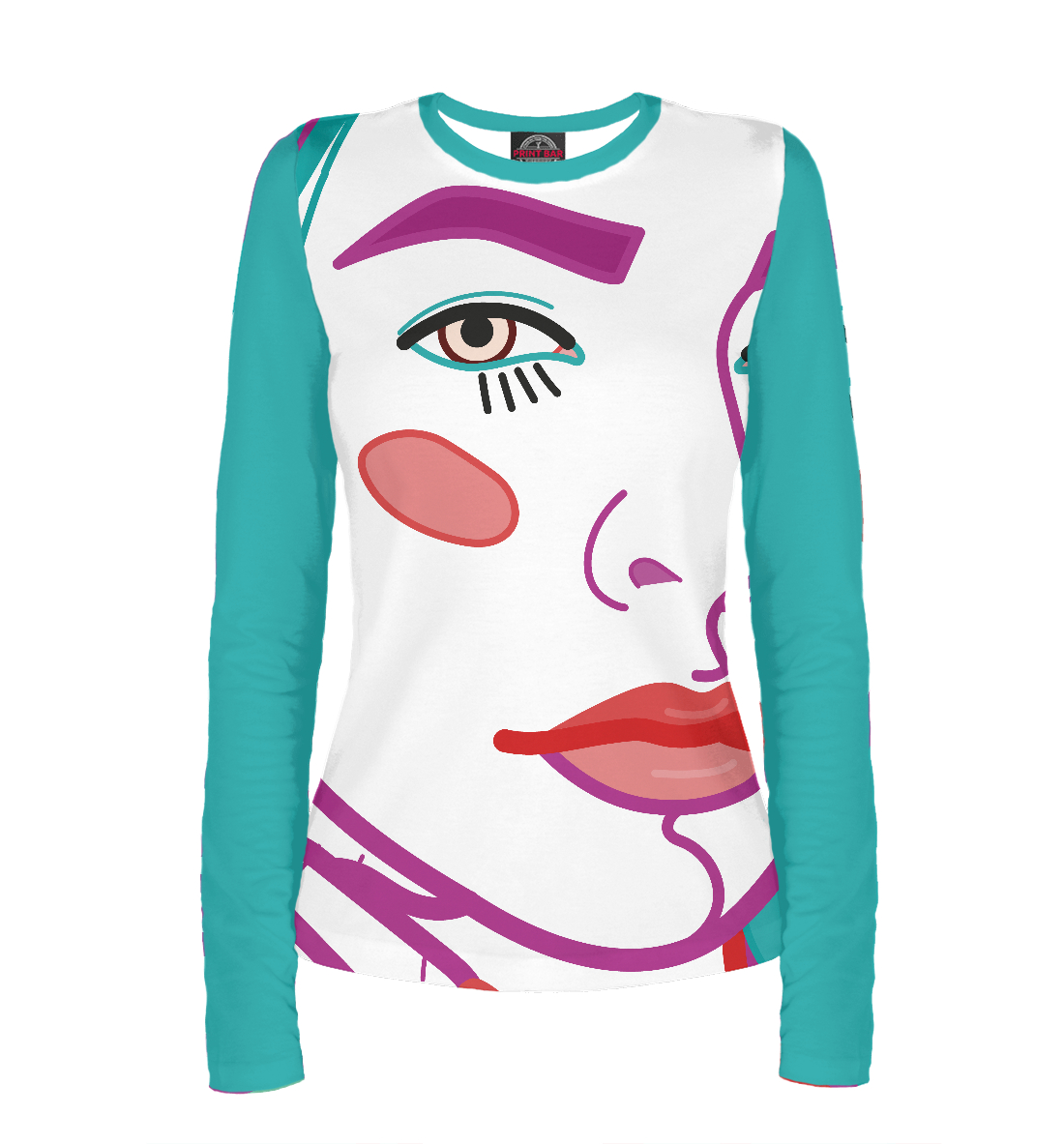 Женский лонгслив с принтом «Арт портрет с женским лицом крупным план»