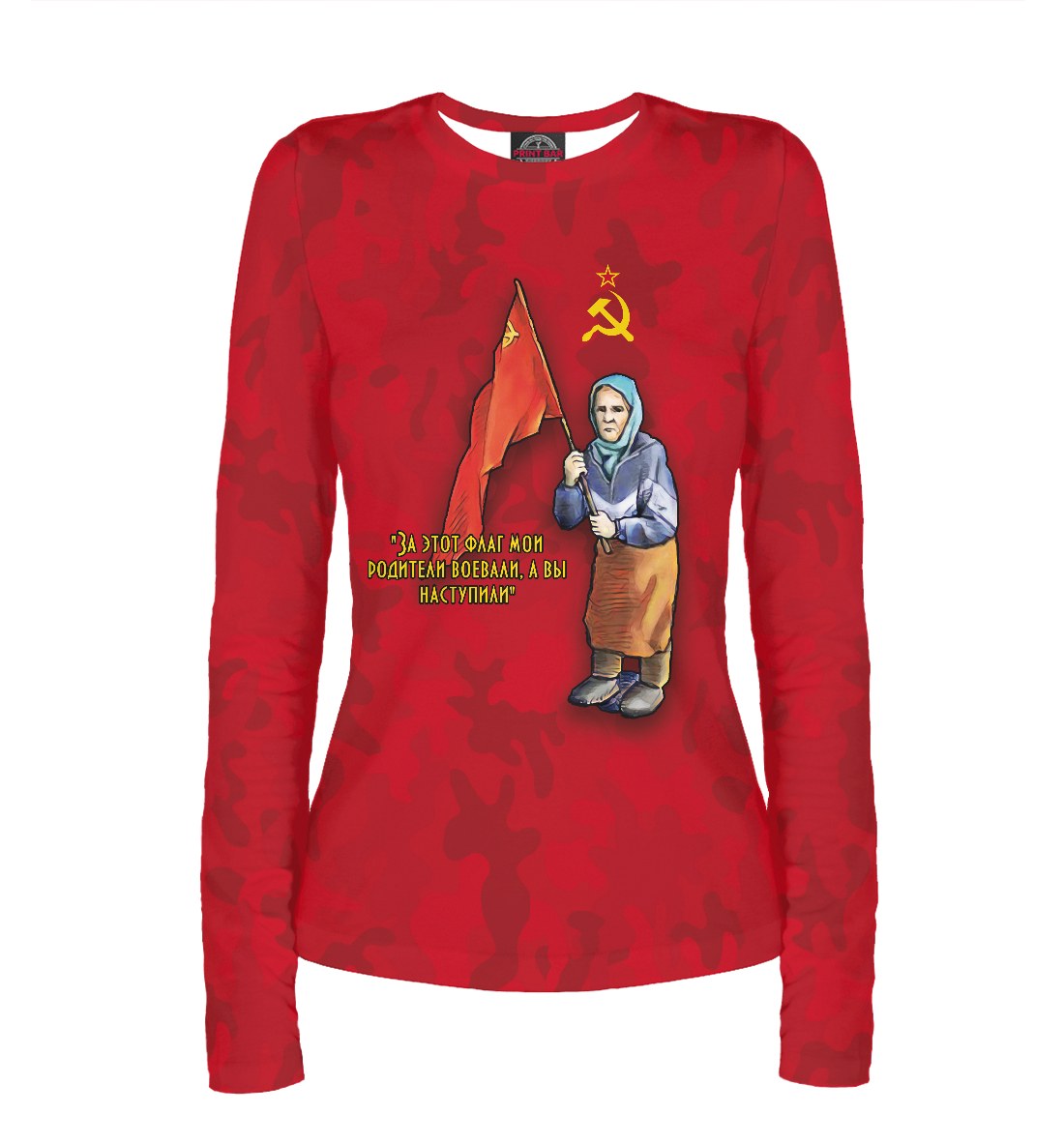 Женский лонгслив с принтом «Бабушка с флагом»