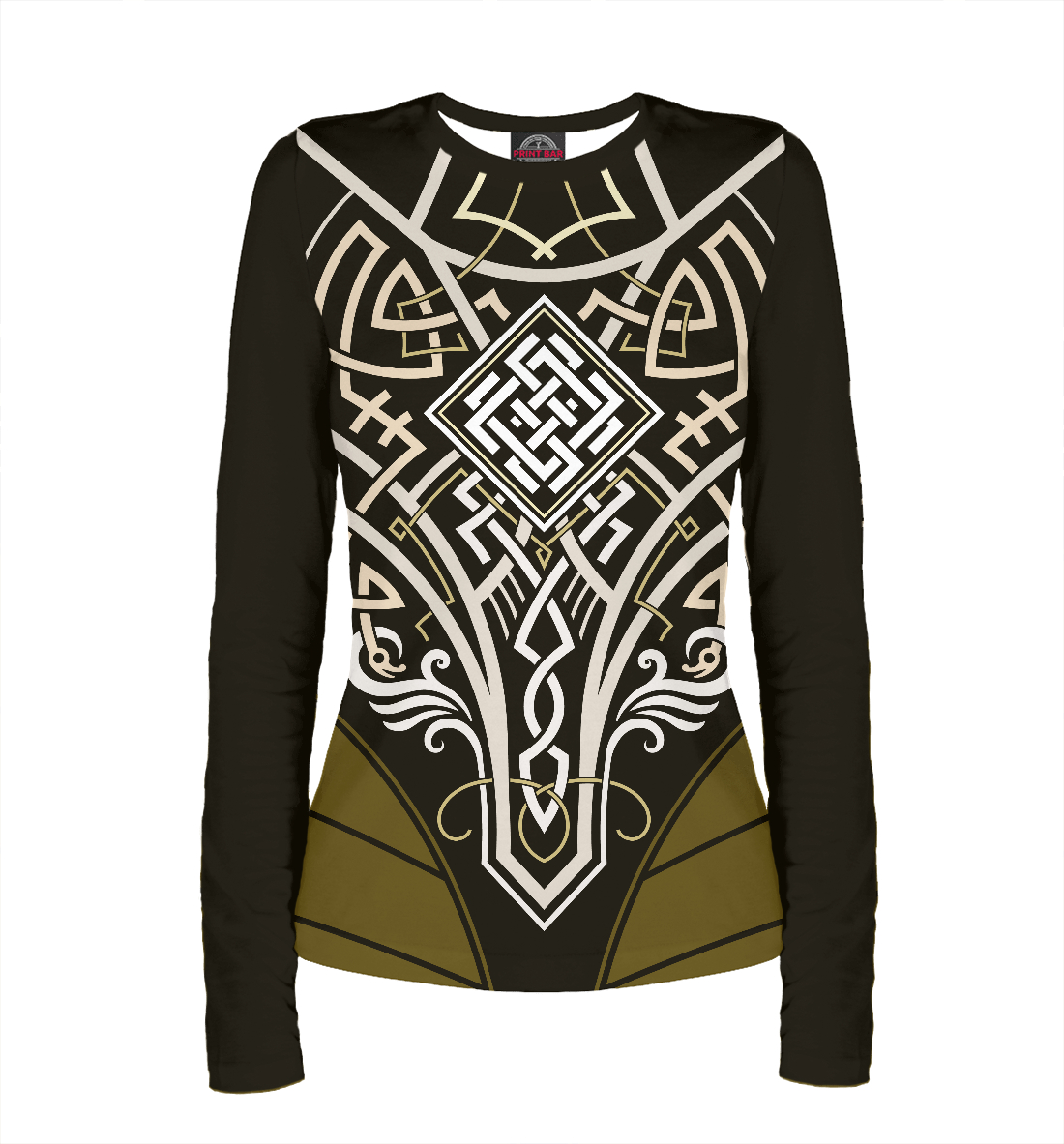 Женский лонгслив с принтом «Белобог - удача, счастье и Благополучие»