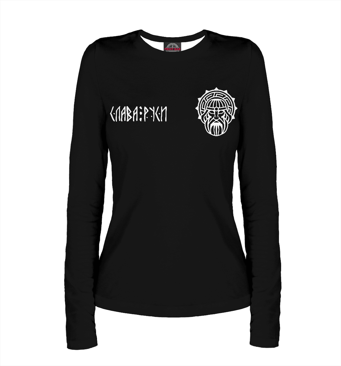 Женский лонгслив с принтом «Белый Сварог на груди»