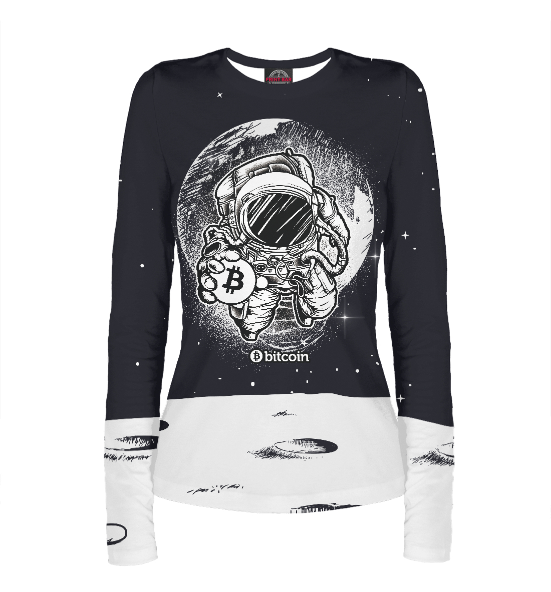 Женский лонгслив с принтом «Bitcoin в космосе»