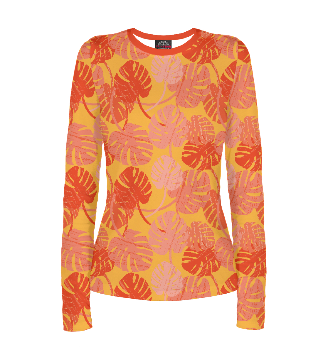 Женский лонгслив с принтом «Большие резные листья на оранжевом фоне»