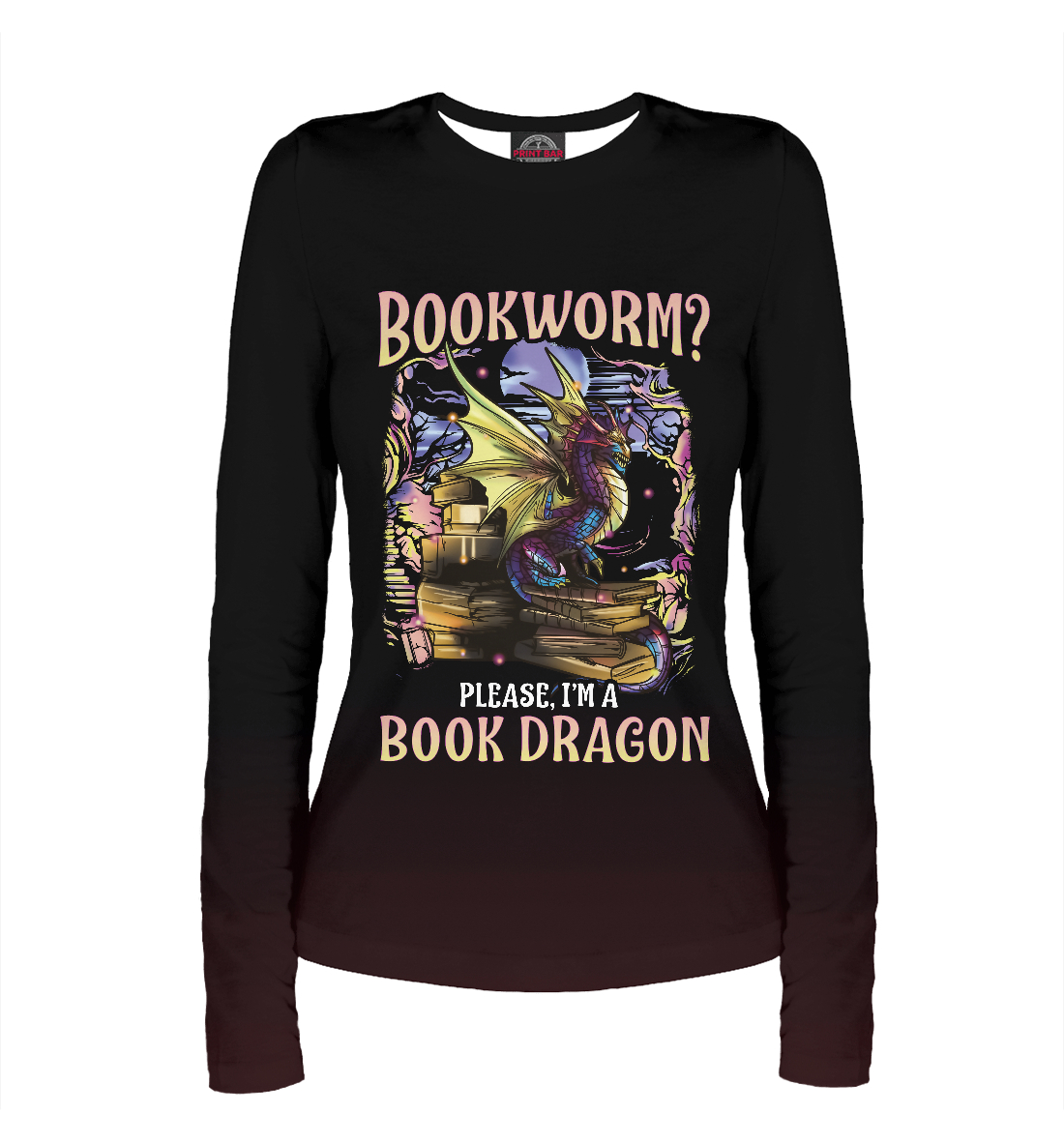 Женский лонгслив с принтом «Bookworm Please Dragon»