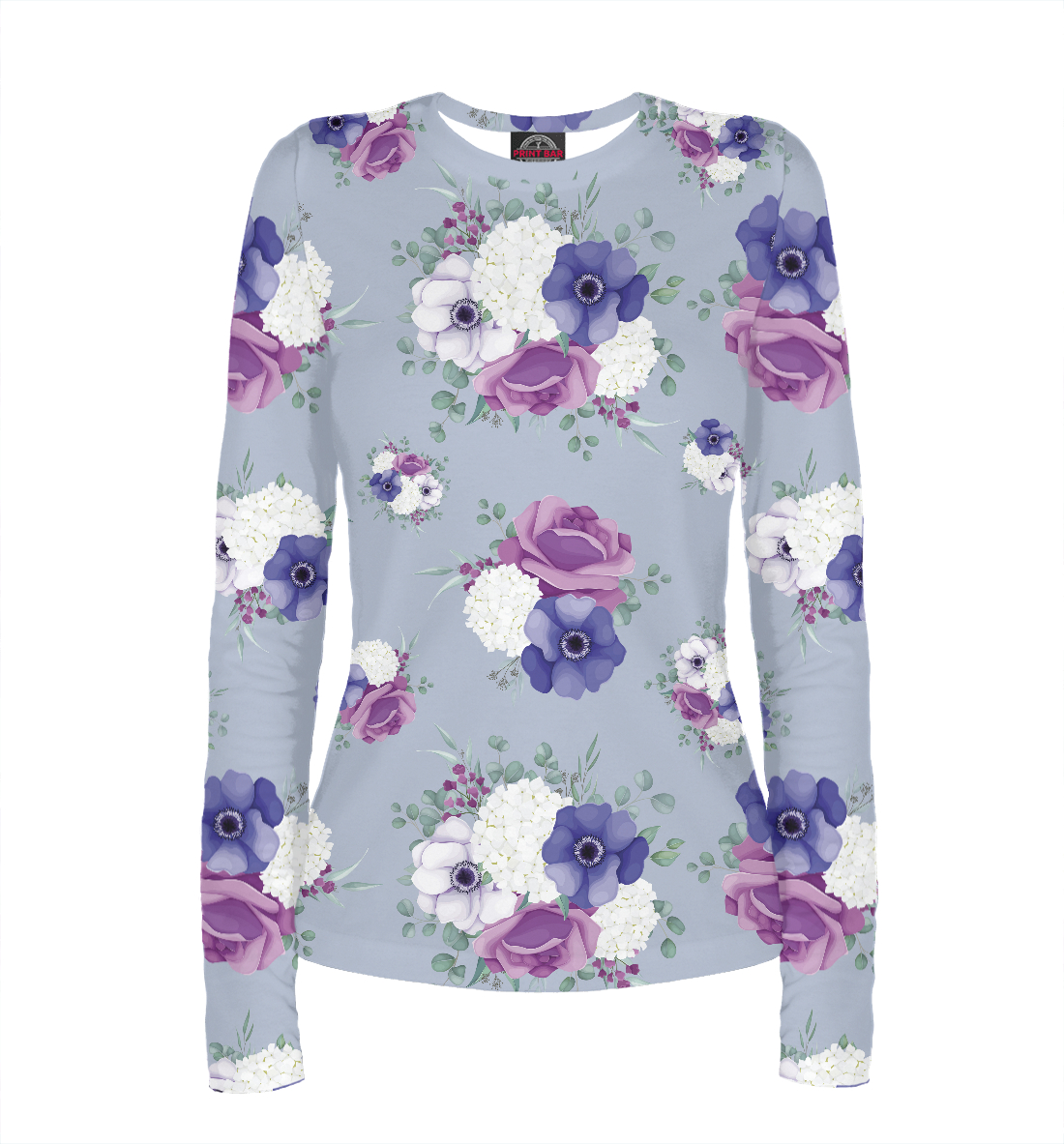 Женский лонгслив с принтом «Бутоны на голубом»