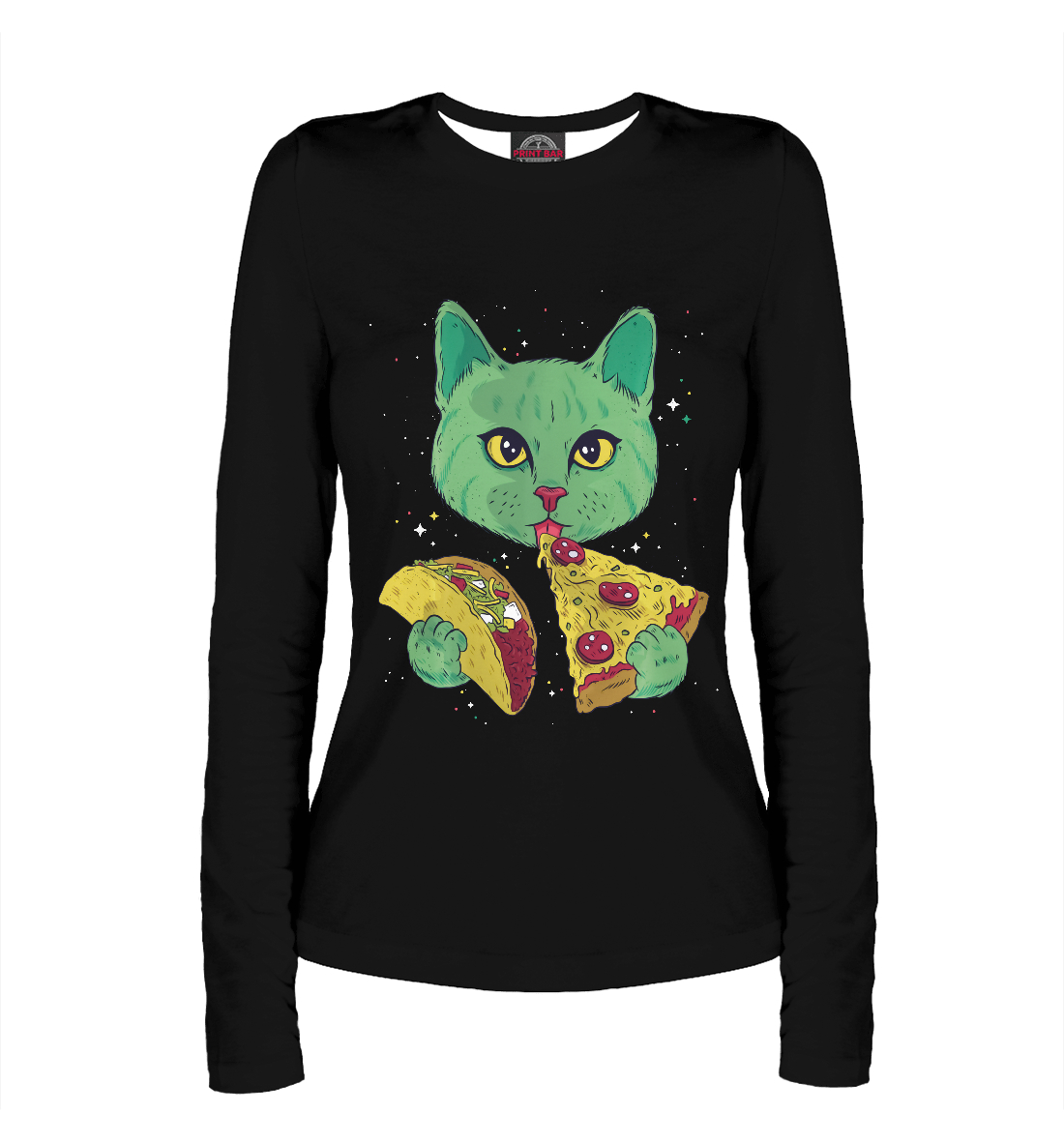 Женский лонгслив с принтом «Cat Eating Pizza and Taco»