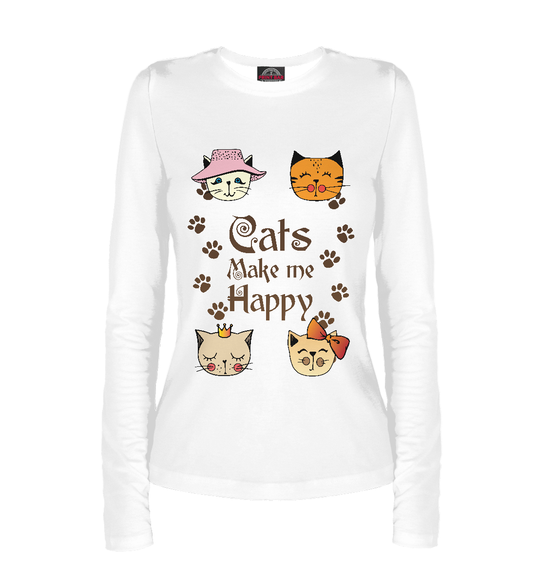 Женский лонгслив с принтом «Cats Make me Happy»