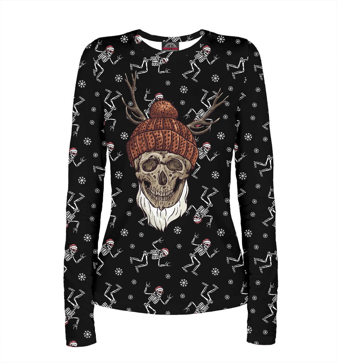 Женский лонгслив с принтом «Череп Санты»