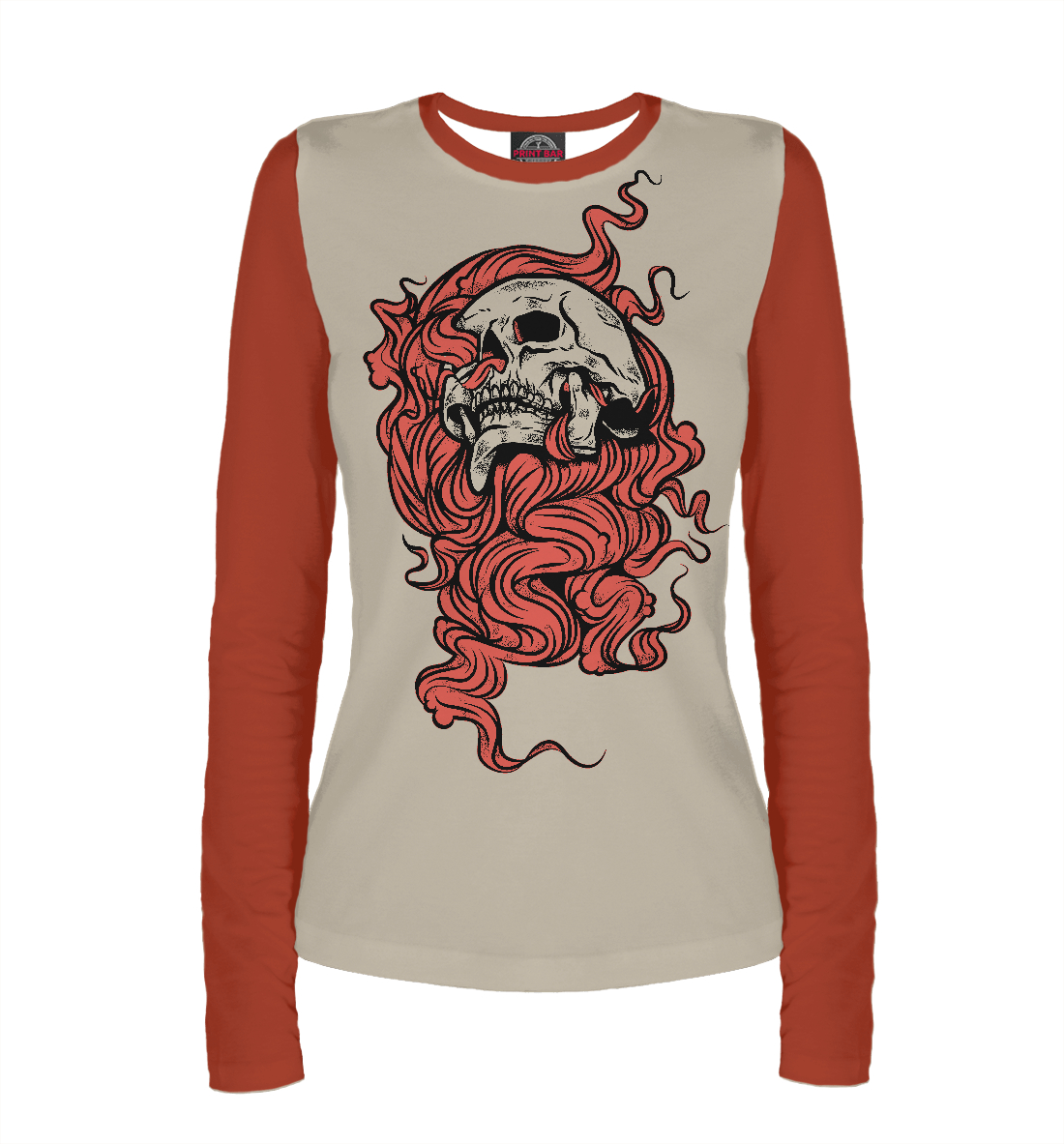 Женский лонгслив с принтом «Череп волокна красного цвета»