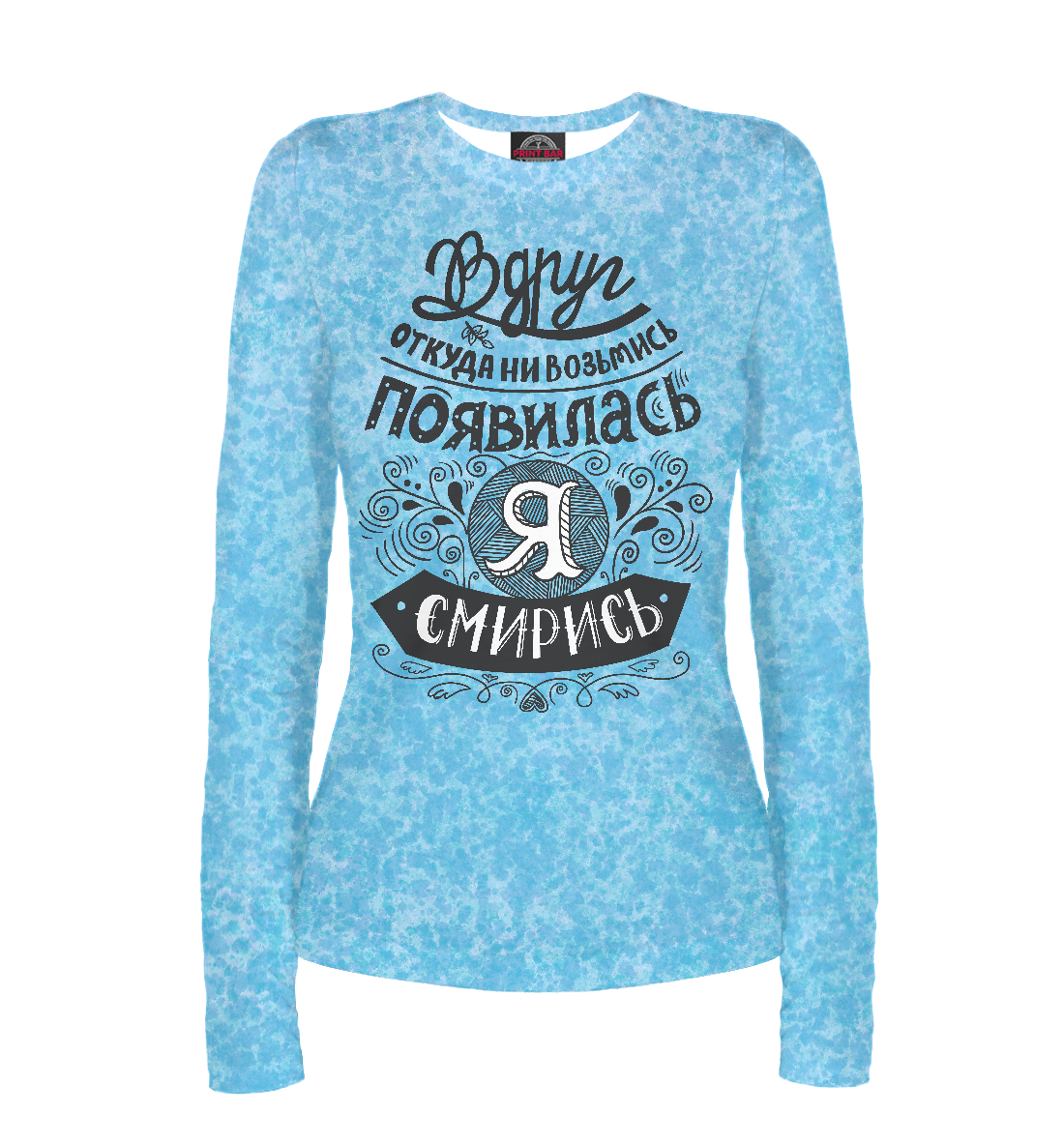 Женский лонгслив с принтом «Черно белая надпись про я появилась»