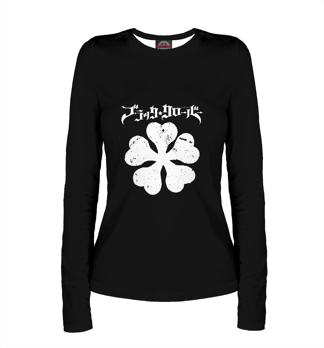 Женский лонгслив с принтом «Чёрный клевер»