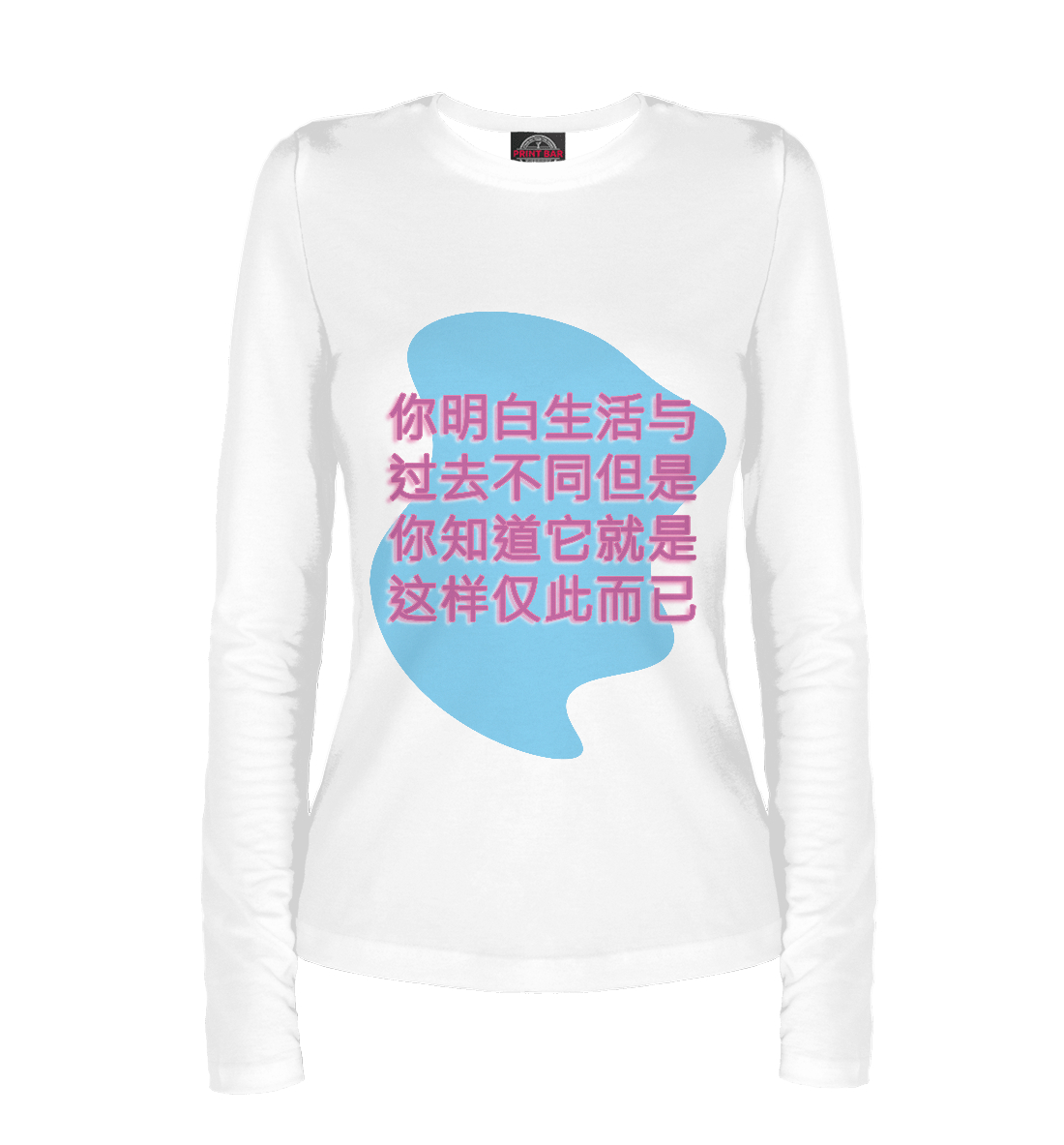 Женский лонгслив с принтом «Что-то про жизнь на китайском»