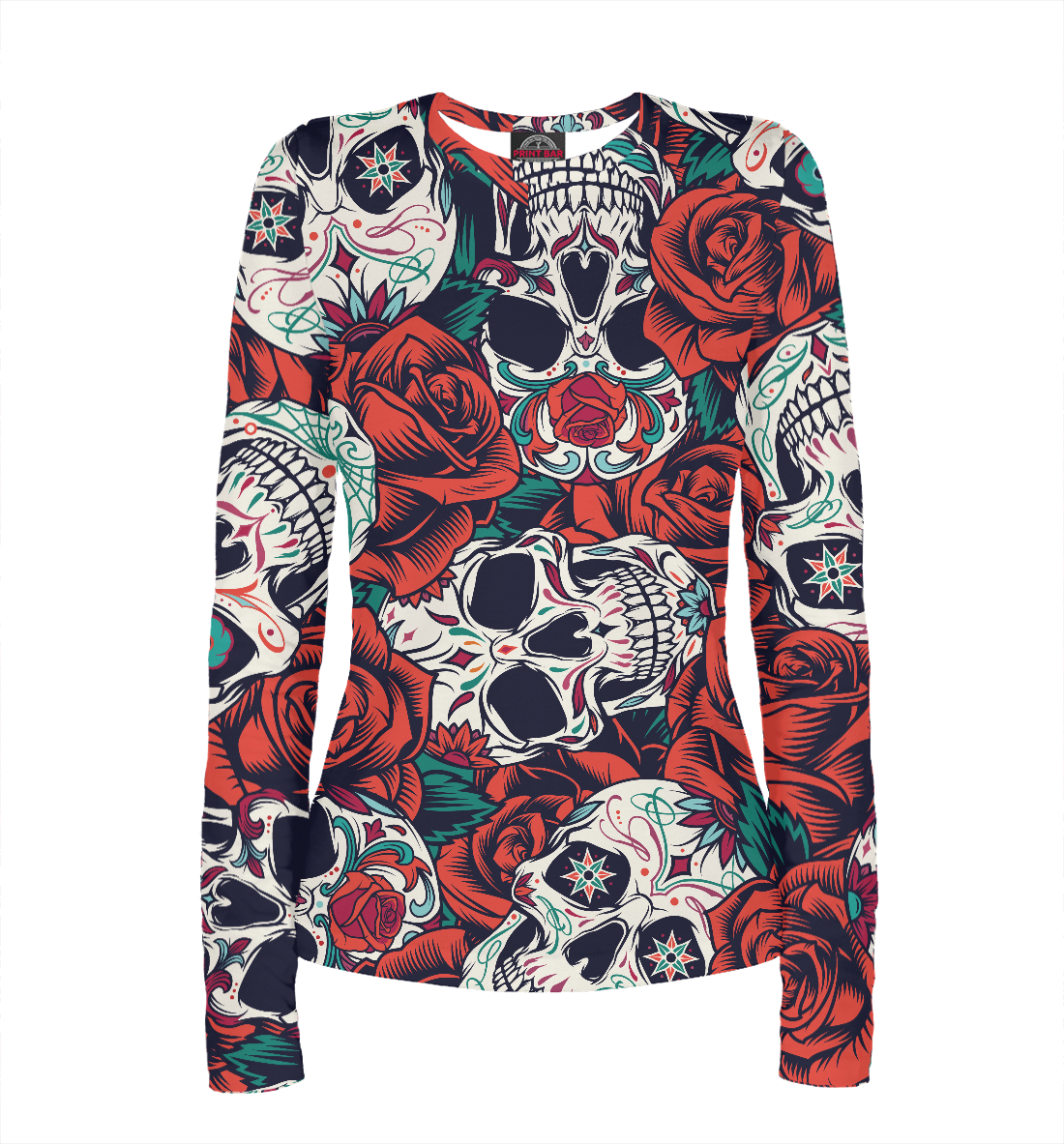 Женский лонгслив с принтом «ЦВЕТОЧНЫЕ ЧЕРЕПА»