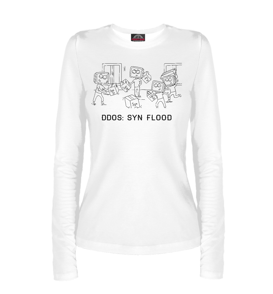Женский лонгслив с принтом «DDoS: SYN Flood»
