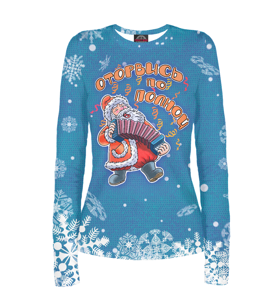 Женский лонгслив с принтом «Дед Мороз играет на гармони»