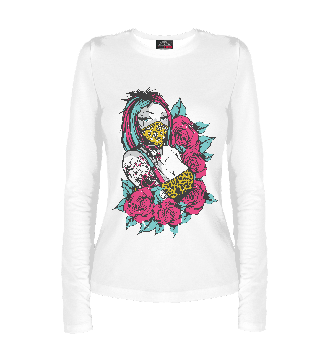 Женский лонгслив с принтом «Девушка с татуировками»