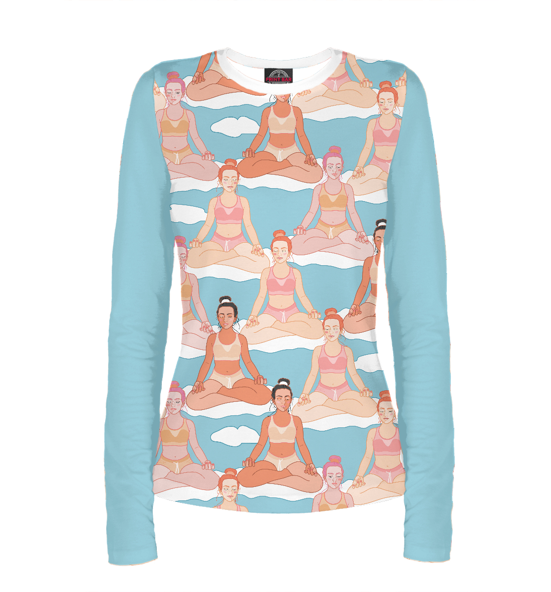 Женский лонгслив с принтом «Девушка в позе лотоса»