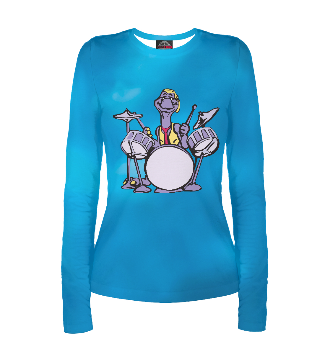 Женский лонгслив с принтом «Dinosaur on the Drums»