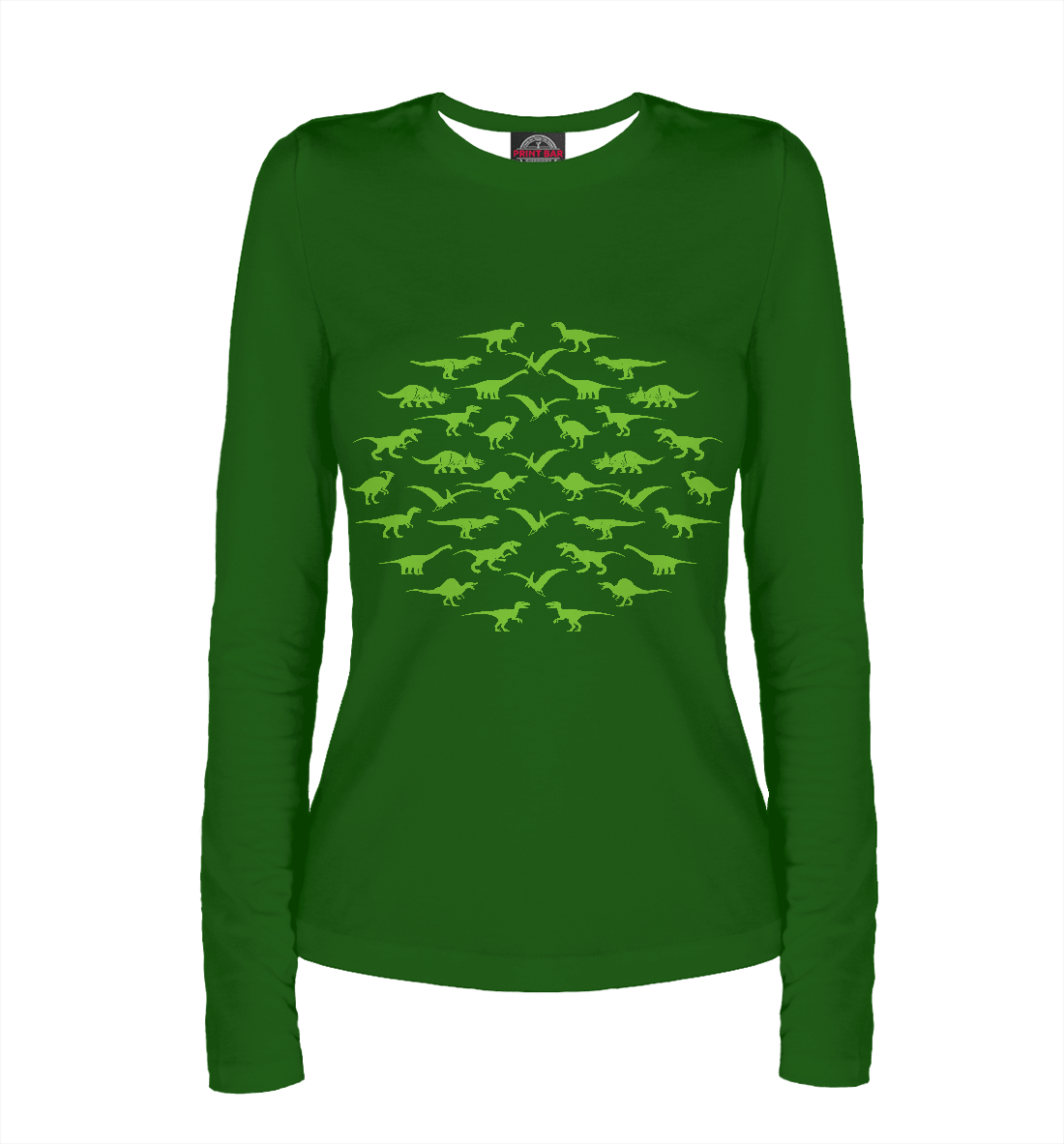Женский лонгслив с принтом «Динозавры (силуэты)»