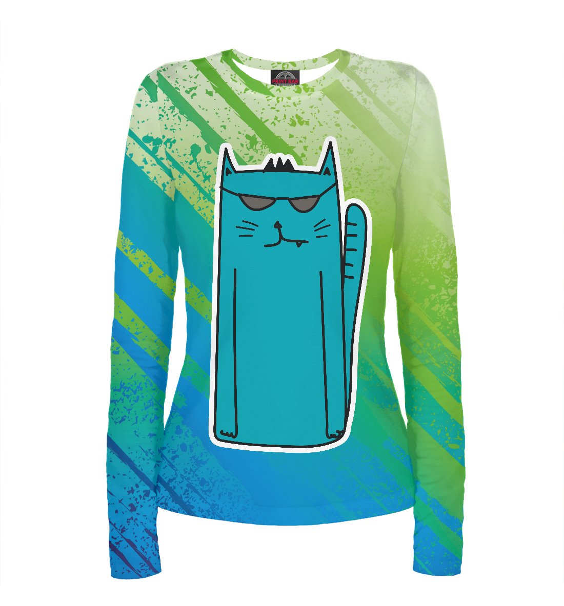 Женский лонгслив с принтом «Длинный синий кот»