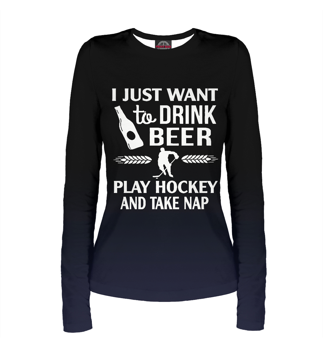 Женский лонгслив с принтом «Drink Beer Play Hockey»