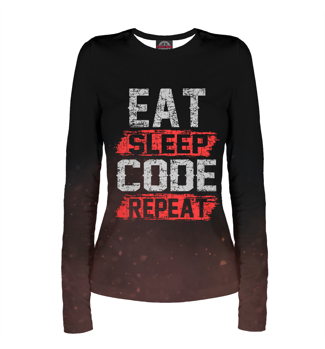 Женский лонгслив с принтом «Eat sleep code repeat»