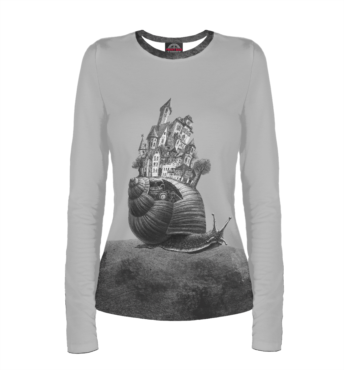 Женский лонгслив с принтом «Фантастическая улитка-город»