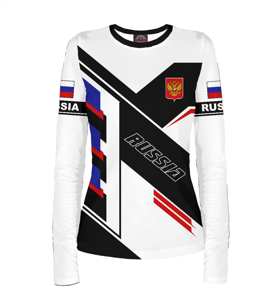 Женский лонгслив с принтом «Флаг России на рукавах»