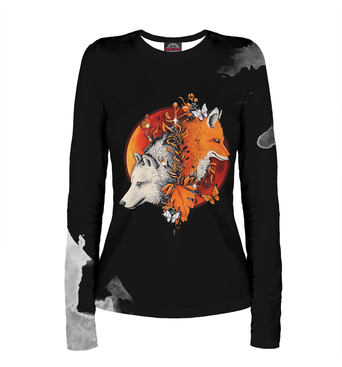 Женский лонгслив с принтом «Fox - Wolf - Blood Moon»