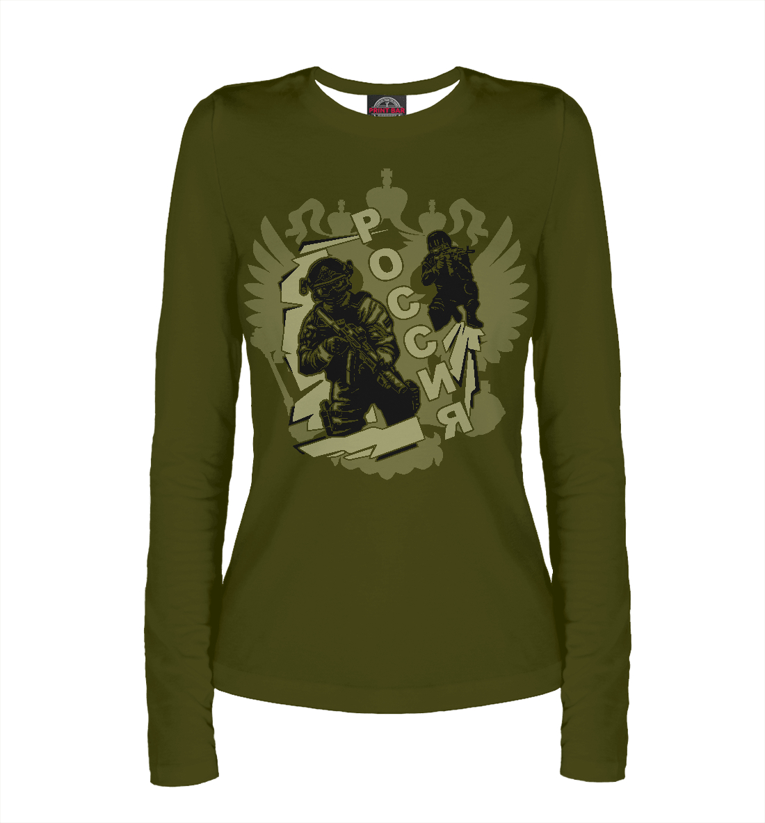 Женский лонгслив с принтом «Герб и воины на оливковом фоне»