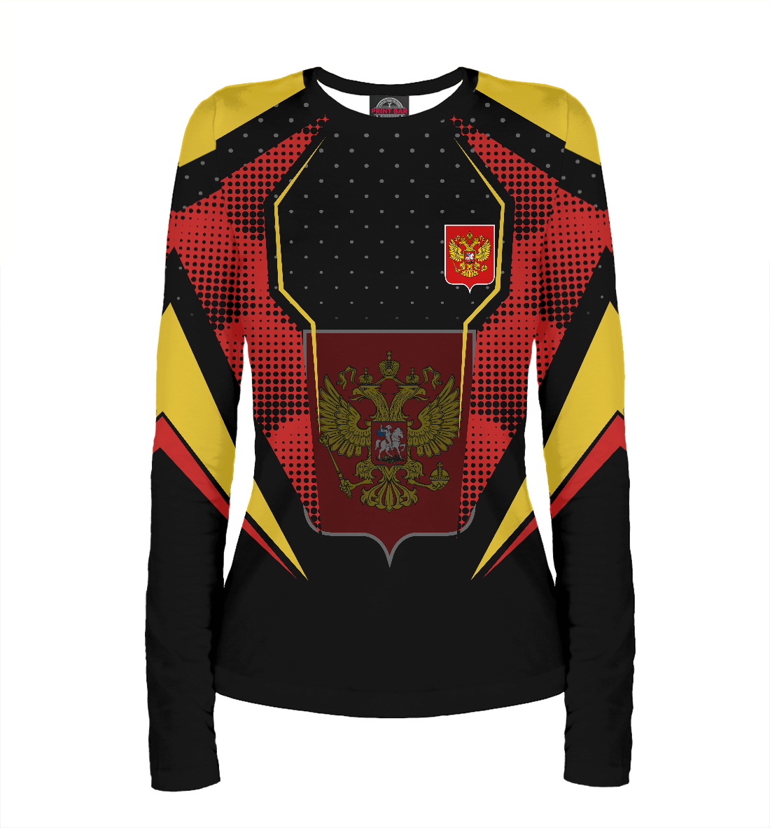 Женский лонгслив с принтом «Герб на абстрактном фоне»