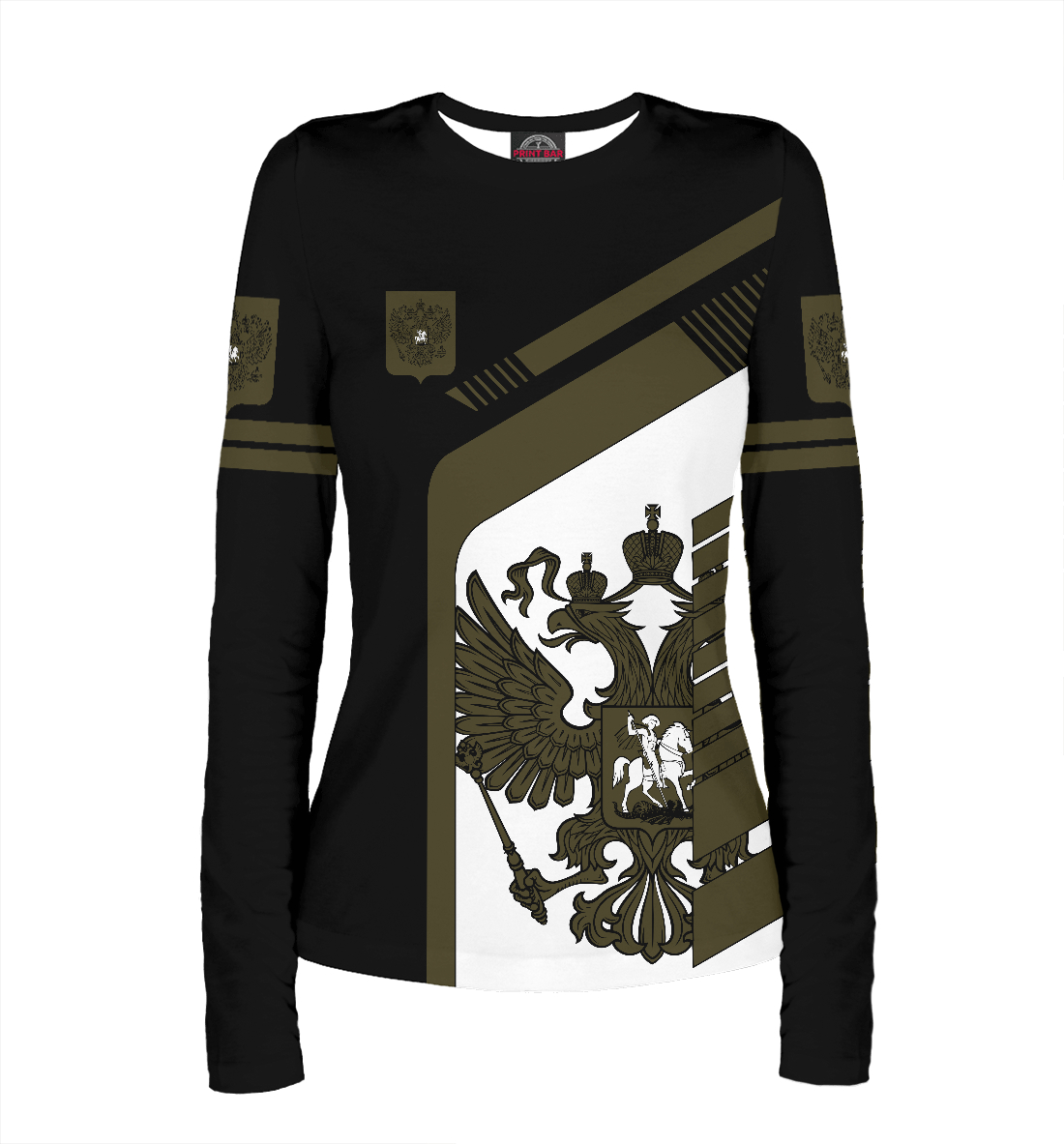 Женский лонгслив с принтом «Герб России зелёного цвета»