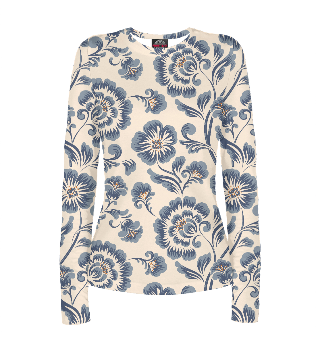 Женский лонгслив с принтом «Гжель (паттерн)»