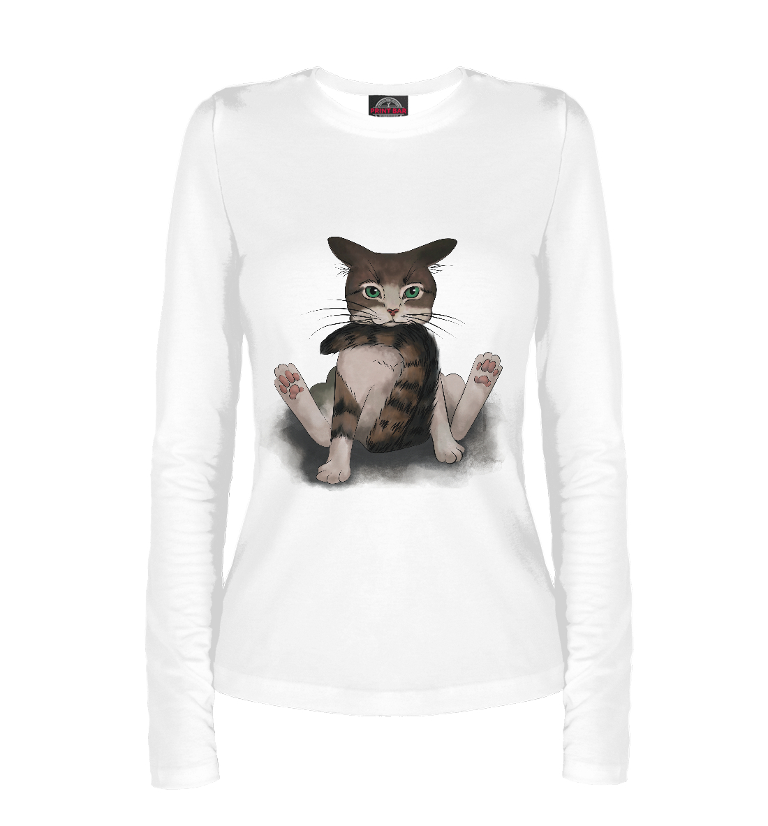 Женский лонгслив с принтом «Котик сидит на хвосте»