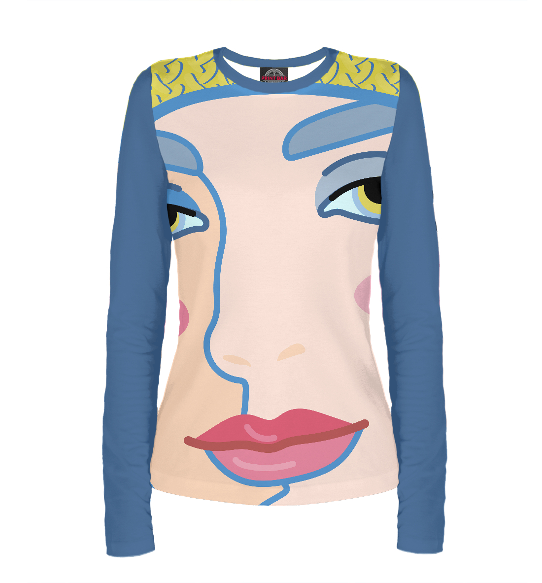 Женский лонгслив с принтом «Женское лицо с яркими губами»