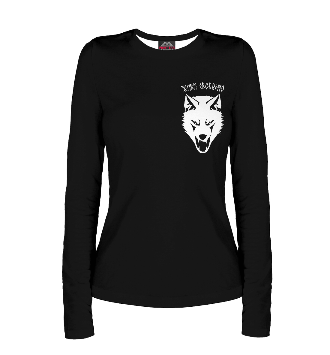 Женский лонгслив с принтом «Живи свободно (белый волк)»