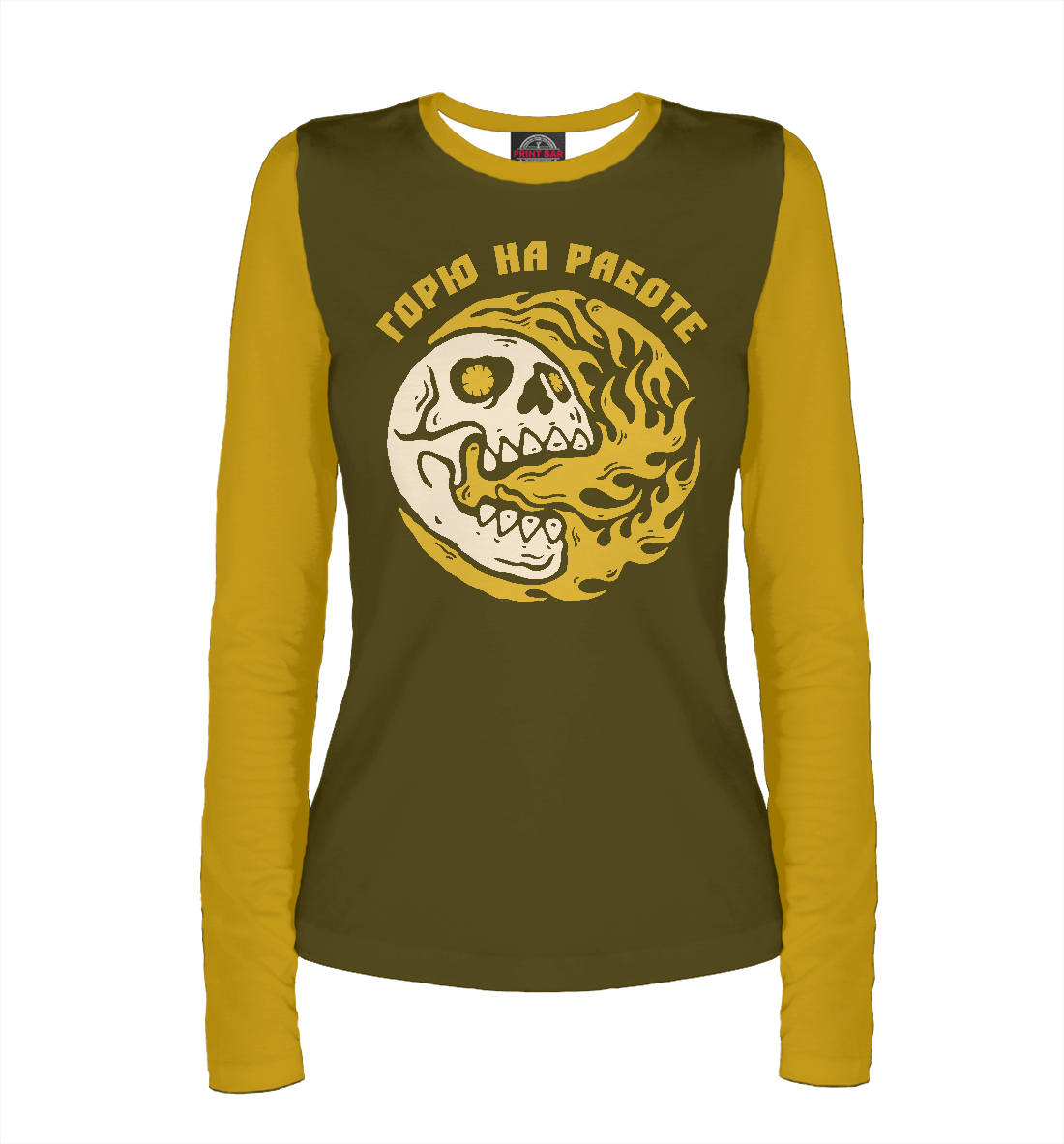 Женский лонгслив с принтом «Горю на работе»