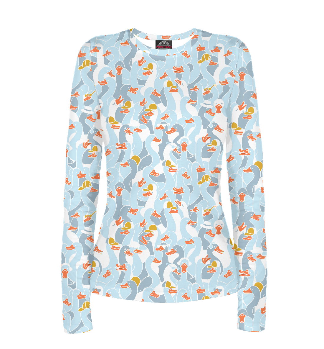 Женский лонгслив с принтом «Гуси серебристо серый с белой окантовкой»