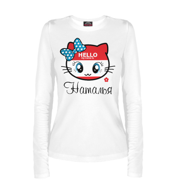 Женский лонгслив с принтом «Hello my name is Наталья»
