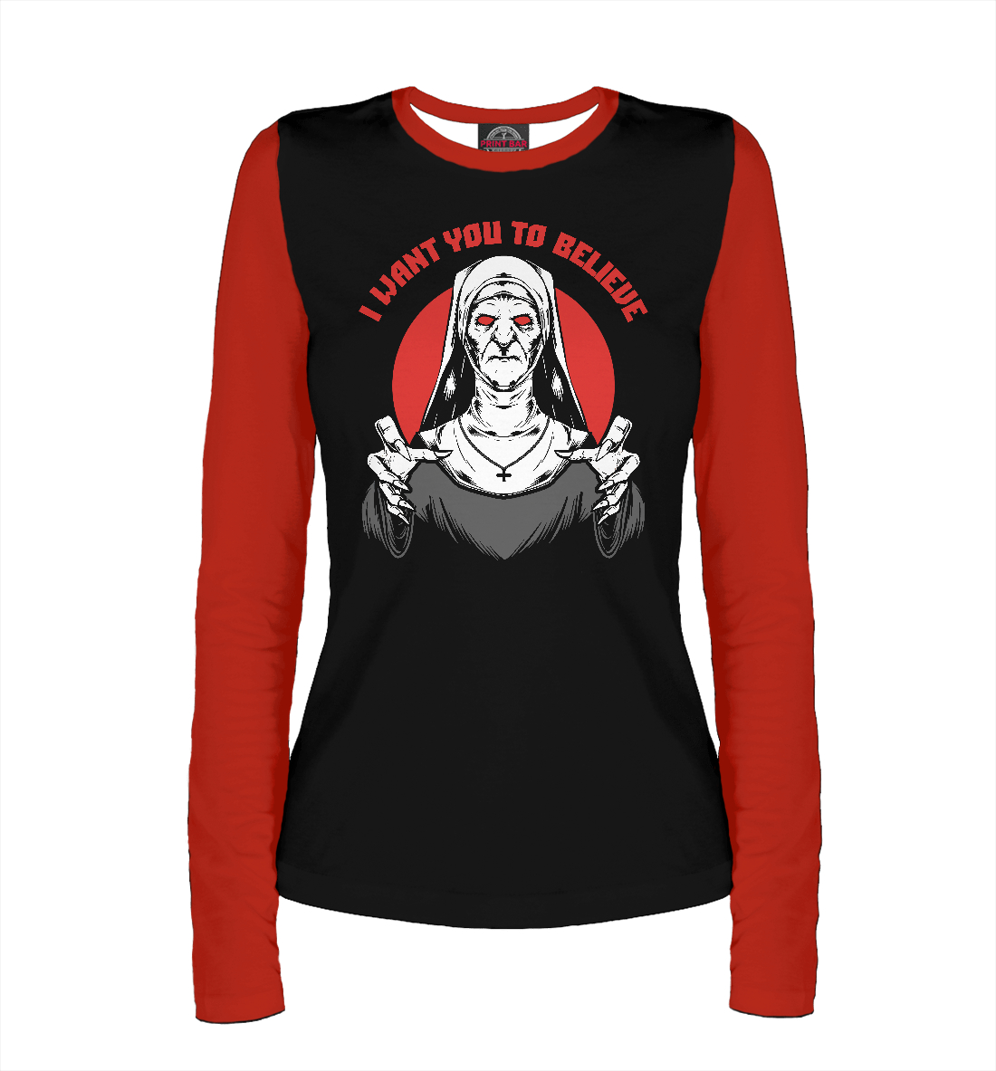 Женский лонгслив с принтом «Хочу что бы ТЫ верил»