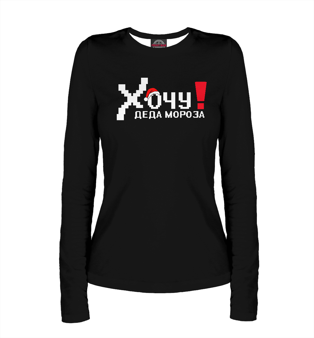 Женский лонгслив с принтом «Хочу деда Мороза»