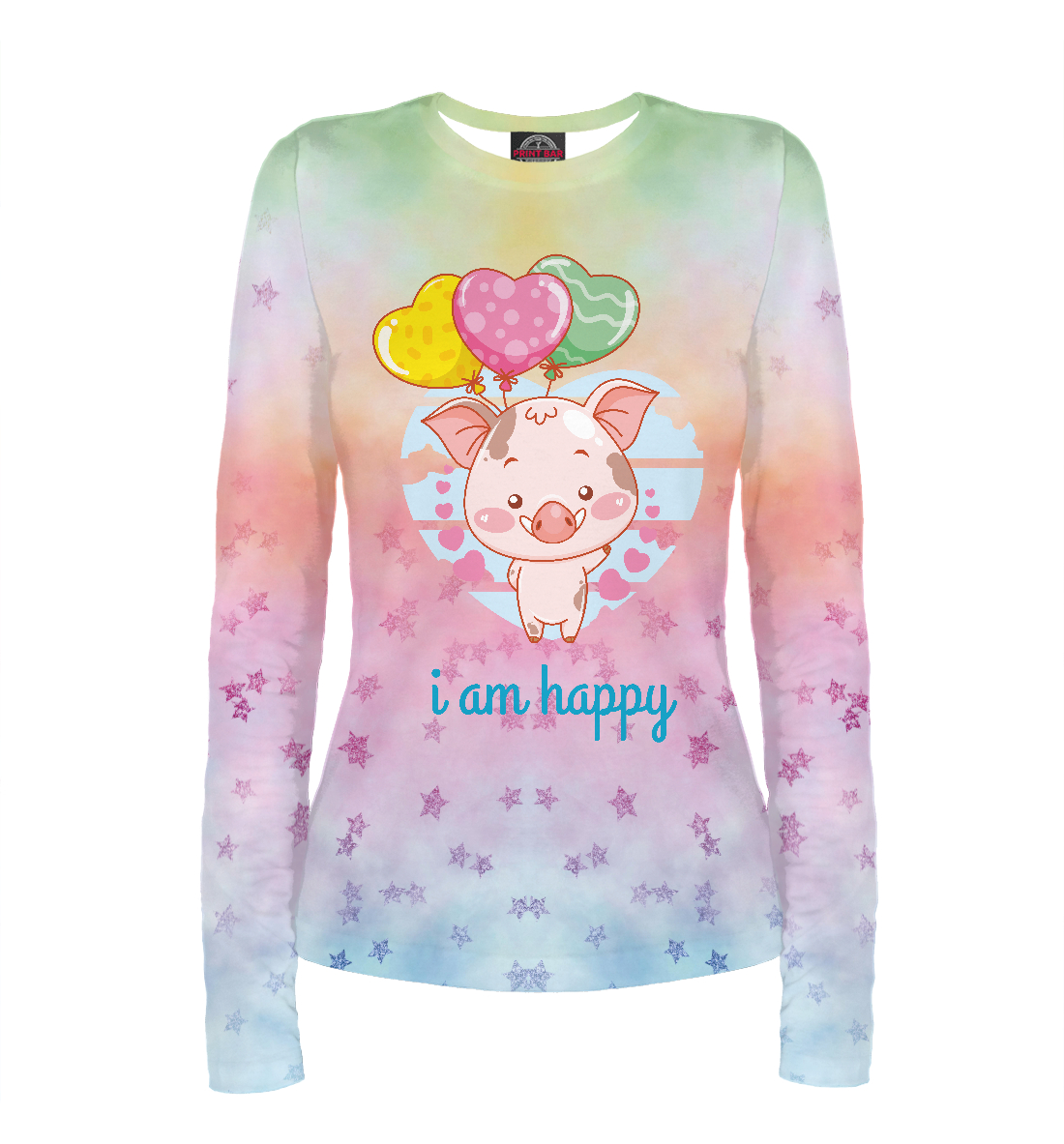 Женский лонгслив с принтом «I am happy Счастливый поросенок»