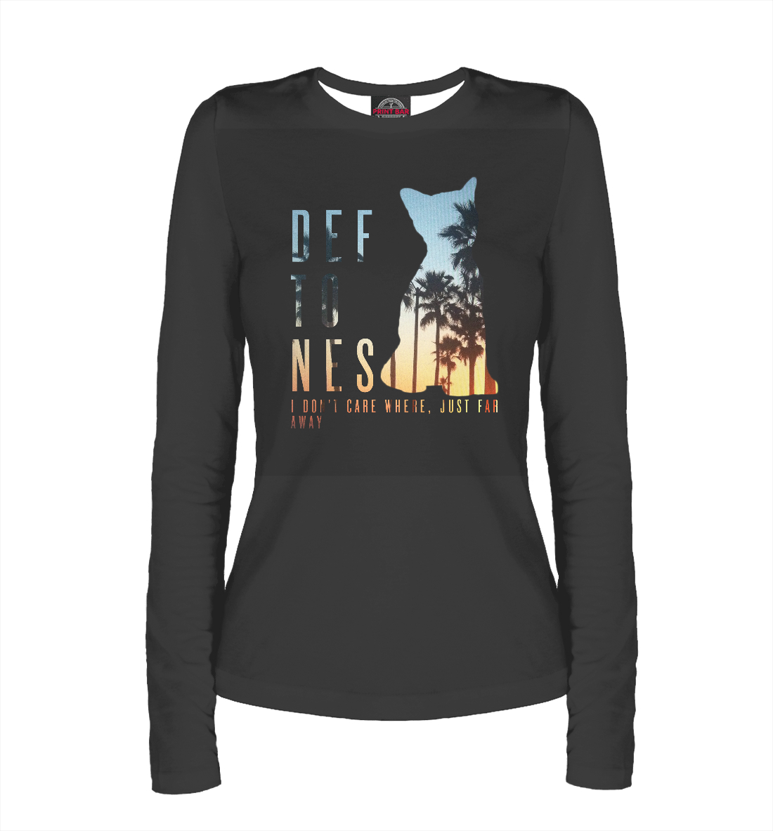 Женский лонгслив с принтом «I Don't Care Where, Just Far Away»