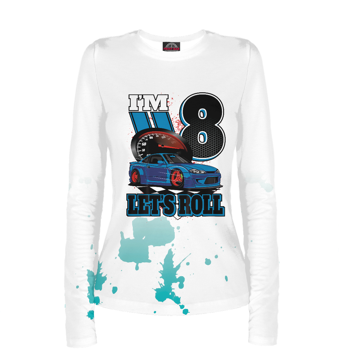 Женский лонгслив с принтом «I'm 8 let's roll»